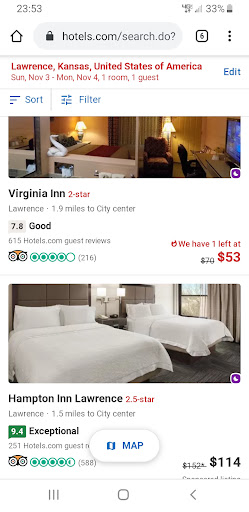 I chose this Inn for an over night stay in Lawrence during the NCAA West Regional's, mainly due to the favorable google reviews and also because I needed a non smoking facility. I am severely allergic to smoke. I was excited when I spoke to them on the phone and they told me they were a "Non Smoking Facility"! This meant I wouldn't have to dodge & avoid people smoking in the parking lot! Upon arrival, we checked in and got our key card. We parked as close as we could to the ramp that led to our second floor room. We got out of our vehicle and I immediately smelled the faint smell of POT! We got a couple things out of our car to take to the room and I asked my husband if he smelled it. He didn't at that moment. We headed to our room and at the top of the ramp we were stopped dead in our tracks as we were overwhelmed with the smell of pot! We immediately turned around and went back to our vehicle & then to the office! We asked for another room farther away from the smokers. (Our room was right next to theirs and that would have been really bad for me!) In the office we were made to sit and wait while the clerk checked out our claim, which was ridiculous! She checked in another guest in the meantime, while we sat there waiting. Of course, they were only smoking cigarettes by the time she got there because of the time she took to check in the other people. All we wanted was a different room, farther away from the smokers. We didn't think that should have taken 30 minutes. We weren't asking her to call the cops or anything! We just wanted what we were promised: A non smoking room! We didn't think it would be that big of a deal in a "Non Smoking Facility"! So after our wait, we finally got the keys to a room farther from the smokers. They totally got away with their smoking on the balcony of the "non smoking facility"......whatever! Dont make the claim if you wont back it up! So we finally get into our room and look around.....and I realize real quickly that the good reviews are all lies! It wasn't clean enough. I've only had one other hotel room that was dirtier than this one. (we've traveled to a lot of XC & Track meets for 9 yrs now!!) It looked like a room from the 80's. The bathroom was horrible and needs to be remodeled. It had an old musty smell like it used to be a "smoker friendly" room. In addition, the beds were so hard we woke up with back aches. To top it all off, the room was horribly over priced and not worth the money we had to pay for it! We have had better stays at much cheaper hotels! I would not stay at this hotel again if they gave me a...