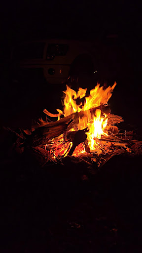 Unmarked sites with no built-in fire rings, but plenty of places to choose from and campfires are allowed (we founds 4 random cinder blocks for ours). All but 1 of the entrances off the highway are too steep and pretty useless for even a SUV. The interior roads are unmanaged and rough due to erosion but are probably still fine for a car just bumpy. There's a good entrance and close parking lot right outside the trees directly to the north (signs say no camping in parking lot).