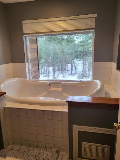 My friend booked this room and you walk in, and it's a gorgeous view on the river. 10/10 would book this view. It is a quiet neighborhood with tons of deer passing by. The in room over sized jacuzzi tub was just what we needed for our relaxation retreat.