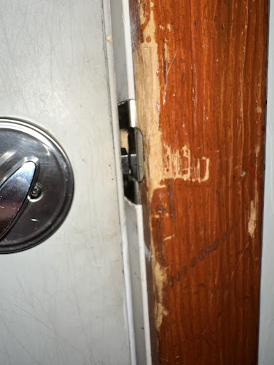 First, regarding safety— the deadbolt would not lock in our room. I had to use a screwdriver to fix the door latch strike plate in order to get the deadbolt to work. Even then, I had to pull up really hard to get it to lock. Guests should be able to sleep securely. I work in the hotel industry for a large company, and I know it’s also against the state code for lodging establishments to have a non-functioning door lock on any room. Has nobody inspected this place??