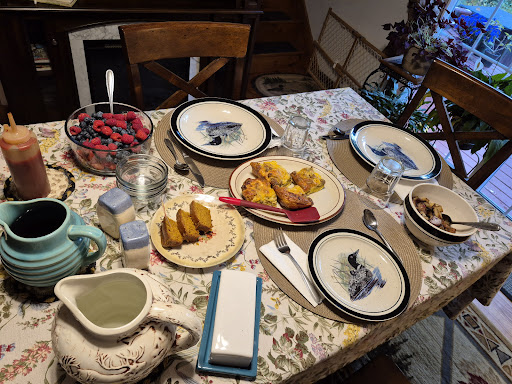 Read moreThis place is simply beautiful! Kathie and John are lovely and extremely accommodating. The homemade breakfast is delicious and is made daily. The choices are varied offering homemade muffins, waffles, or pancakes, eggs-made to order, sausage, pancakes, bacon, fresh berries yogurt and granola, and juice. A coffee/hot chocolate bar keurig is set up in a common area for those of us who love coffee! The property is clean and very homey. The rooms are on the second floor with nice wide staircases. There are several common areas to play games, read etc. Their 2 dogs, Odie and Shera (unsure of the correct spelling) are beautiful and sweet. They barked on arrival, not knowing us, but immediately warmed up to us and were quite friendly! They offer canoes, kayaks, paddle boards, campfires and natural viewing of fireflys along the property edge. There is a tranquil babbling brook small waterfall where the lake runs into the stream. The lake is a great for spot for fishing! We just got home and have already booked our...