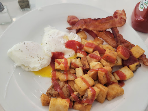 The worst part was Sunday morning when we went down for breakfast at 8:45am. It was busy, which we understood, but there were 4 empty tables covered in dirty dishes that stayed that way for over an hour. I asked the waitress if she could clear one so we could sit, and while she said she would, nothing happened. We ended up sitting at the bar, where we waited over an hour for our food. The whole situation felt chaotic, and it seemed like the staff was more focused on clearing out the buffet area than helping guests find a table and enjoy their meal.