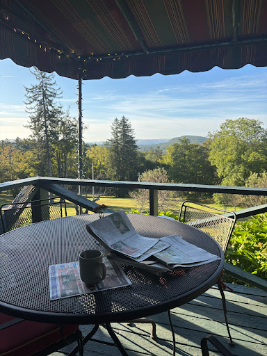My friends and I had an amazing stay at the Apple Tree Inn and will definitely be going back. I was relaxed from the moment I walked into the lobby, poured myself a cup of coffee, and sat down on the porch to gaze out at the spectacular view of red- and orange-specked hills. I was greeted warmly by the staff, the owner Claire and her husband Toph, and by Max the dog.