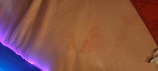 In the morning I went to the office and told the manager of my concerns and brought of the blankets and the first thing out of his mouth was "oh, you don't have to parry that's not blood", I didn't even explain what the stains looked like I simply just said they were all stained. So the fact he jumps to blood tells me all I need to know.. I said to the guy, look idc what it was I feel like clean bedding should be the bare. Minimum to expect when staying somewhere and theirs no excuse for dirty sheets and covers. Zero excuse.. He just shrugged.