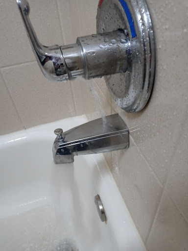 The Bad: This hotel definitely in need of remodeling. Old worn carpeting in hallways. A dingy odor (probably due to some guests. More on that below). Bathtub faucet leaked water (see pics). Kitchen cabinets were painted a poor choice of brown and looked like a cheap attempt to upgrade appearance. Missing cabinet handles. NO PANS! Only two pots. So, we could not fry the frozen burgers we brought along. Disappointing.
