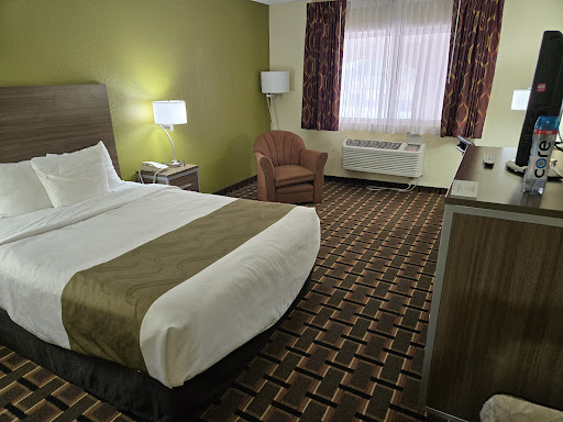 Read moreI chose to stay in a Choice Hotel based on previous experiences in Rapid City SD and Wyoming. I expected a better experience all around for this being a Choice Hotel and am disappointed this hotel was not up to what I believed Choice Hotel standards to be. For the cost and the Choice Hotel name, I expected better. Prices offered online were not honored when I tried to check in. I expressed frustration with the price difference and the front desk person asked how much money I had and offered a cheaper price but it was still higher than what I saw online. The front desk person was polite but did not make me "feel welcome" like I have felt at other Choice Hotels. The next morning, the same front desk person told another guest his dog would scare other guests. There was absolutely NO reason for this other than the breed of the dog. The dog was very friendly, loving, and well-mannered. The front desk worker was helpful to me when I was confused about the waffle maker haha! The Door Swing Bar Lock Hotel Door Latch was broken so to feel safer, I put an ironing board in front of the door. The sheets and bed spread were stained. The room smelled stale and did not smell fresh. Despite the fact I had a do not disturb sign on the door, hours before check-out time, someone loudly knocked on my door. At check-in, I was told that even though signs said check out was at 11, check out time was actually 10am. This was an ok place to stay but likely I would not...
