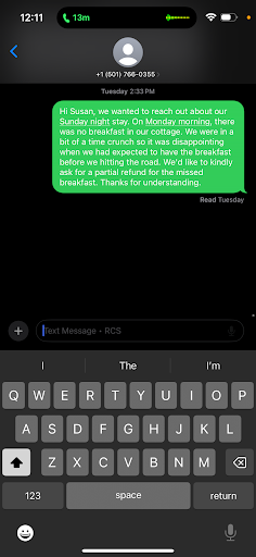 I asked Susan politely for a partial refund due to the missing breakfast and she ghosted me.