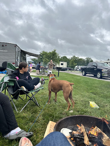 Cons: our tent site was severely sloped and full of pine tree roots. We have a large family therefore a large tent (4 room 12 person). The placement of our large tent was limited due to the slope and the roots but we made do. If you have a smaller tent I don't think this would be an issue as you could set up your tent in an area where the roots aren't as bad. The campground itself is very near Highway 33 and OH State Road 664. This means you can hear the traffic all the time. If you are a light sleeper (me) there isn't a lot of peace but ear plugs would help :) You are also very near other tent campers so you can hear, and smell, everything. Not everyone pays attention to quiet hours, it wasn't too bad while we were there but I can see why other reviewers pointed that out. The bathhouse needed attention, like replacing soap and cleaning up after those who fail to clean up after themselves. I just took paper towels and soap with me every time but that was kind of annoying to have to clean up just to be able to use the sink area (like having a clean, dry area to put my toiletry bag). The arcade was completely closed and there was no ice cream. The jump pad had a ton of standing water in it so my son had to change clothes.