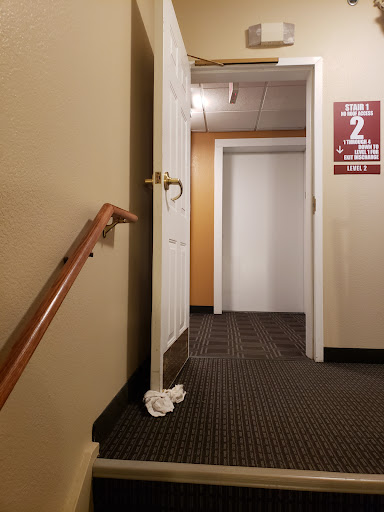 When I got there, the main front door was closed at check-in time. What? I've never in my life had to be "buzzed in" at a hotel during normal check in time at 3pm. So, that was odd. Front desk people seemed like they were overcompensating for the weirdness, I just wanted to bypass the desk with a mobile key but that didn't happen. So I was subject to about 10 questions about my trip there (just drove several states away, super tired, probably look as cranky as I feel, can I just have my key?)