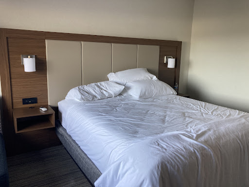 Read moreThis definitely shouldn't count in my review BUT... my room was upgraded to a larger room prior to my arrival. Not sure who is in charge of the upgrades. I didn't request one. I just received an email a day or two prior to my arrival saying that my room was upgraded. PRETTY COOL!!! When I called the hotel to inform them of my late arrival I requested extra blankets, sheets, and pillows, and when I arrived at the hotel those items were already inside my room. PRETTY COOL!!! Upon arrival the gentleman at the front desk thanked me for being a Platinum Elite member, asked me if I wanted the welcome amenity points or gift, and asked to see my credit card on file. FIRST TIME this has EVER happened at any IHG hotel... and I'm pretty sure that "SHOULD BE" common protocol for every customer. I actually needed one more blanket so when I went back to the front office the same guy said that they were out of blankets in the front office, but went out and got me one from I'm assuming housekeeping. No questions asked just went and got me another one. I just stayed up at the Berkeley Holiday Inn the night before and when I asked the guy in the front for extra sheets and blankets he told me that he didn't know where they were in housekeeping and asked me "why do you even need them?" He said he could get me them in the morning when housekeeping arrived. Like I really needed blankets and sheets in the "morning". One con is that this Holiday Inn has two separate buildings so we had to walk to breakfast outside of our building and into the rain to get to the main building where the lobby and breakfast area is located. Other than that the room was immaculate. Kind of seemed like this was a newer hotel. Would definitely stay...