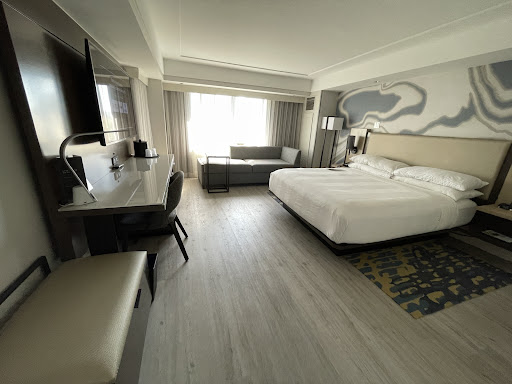 Read moreStayed 3 nights here with our family of 3 to tour local colleges for our son. Great choice!||We reserved a Corner 1 Bedroom Suite room, which was on a high floor with direct views of the Queen Mary (less than 1 mile away), the bridge and Downtown Long Beach skyline. Really great views!||Staff was incredibly friendly and responsive -- shout out to Katherine who got us the room we hoped for and was so helpful.||Note: There is no restaurant or bar on the property (except for the free breakfast, which was in typical Residence Inn style, OK but nothing special), just their market where you could buy snacks, sodas, beer/wine, etc. You will need to walk, drive or Lyft to other restaurants. There is an overpriced Mexican-themed restaurant at the Maya Hotel next door -- also great waterfront views but expensive and while we didn't eat there, it doesn't get the best food quality reviews. Other than that and the restaurant(s) on the nearby Queen Mary, you will need to cross the causeway bridge into the LB waterfront/downtown area, where there are tons of choices. It's an easy 15-20 minute walk depending on where you're going, felt safe and secure. The Downtown LB area is really nice these days -- things change as you get inland down around 7th-8th streets, but if you stay on water side of that border, everything is good. Pine Avenue - an updated stretch of old town LB, is fantastic and full of restaurants, nightlife, etc. Pleasant surprise!||The Suite was very bright, modern and clean. BIG bathroom and lots of windows in the 2 main rooms.||If this is your first time in LB, highly recommend taking a tour of the historic Queen Mary, which is permanently docked down the water front about a 20 minute walk away. There is also an extensive waterfront trail for walking, running, bike riding, etc. that runs all around the area. Watching the busy port activity behind the hotel was fascinating - and just far enough away, no noise issues.||The one reason giving a 4-star vs. 5-star review were a couple of room comfort issues: We had an issue where it was either too hot or too cold in the room - too hot if A/C was turned off, and instantly too cold when A/C was working. Like a thermostat problem or something. We notified the front desk and they said they'd have Engineering look into it. The A/C could also be a little noisy, but earplugs took care of that at night. Also, like so many hotel sofa beds, it was uncomfortable for our son to sleep on. Wish more hotels would move to the modern, more comfortable foam (not steel spring) sofa beds for guest comfort.||All in all, a great stay and if you don't mind a short walk or car ride to nearby destinations,...