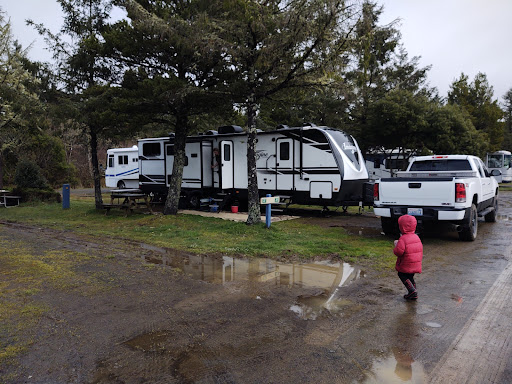 The property is well taken care of. We have a dog and there's plenty of room for him to roam around at our campsite and around the campgrounds. The bathrooms were clean and the laundry facility worked great for us and our kids clothes. The campground itself is close to Long Beach and all the shops and restaurants. We walked and rode our bikes the 300 yards to the beach daily sometimes multiple times a day. Some water on the trail but nothing to bad. For us this was the best part of the campground!!! Having the beach so close was fantastic. Especially with kids they can go from 0 to 100 pretty quickly and we can bug out at a moment's notice and get back to the trailer. The trail crosses right over the discovery trail which is a paved bike/walking/running path and we frequented that as well. Evening rides to the North Head lighthouse were common for us!