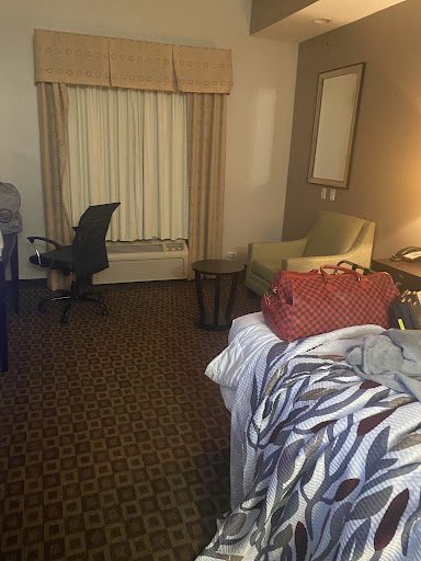 My dog was starting to get really stressed from the roadtrip, so we stayed here for 2 nights. I love that the staff is pet-friendly. The first morning when I told her it was time to go potty, we stopped for a brief chat with the housekeeper in the hallway. Well... I had already said "potty", so once I stopped, my girl decided it was time to go. I felt awful! The housekeeper was reassuring and immediately radioed for maintenance. Before we got to the elevator, maintenance had arrived with a carpet shampooer to handle the situation. It was at that point that I realized the carpeted hotel didn't smell AT ALL like pets. They really do a fantastic job of keeping on top of "situations".