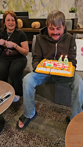 It was my son's 49th birthday, and Daddy was taking him to Disney in nearby Orlando. Debria even fixed a Happy Birthday Poster for my son. She kept his birthday cake in the back office fridge. They lit it and brought it out to the lobby area, with plates and refreshments, and Really surprised him. That's going the extra mile in hospitality for a guest.