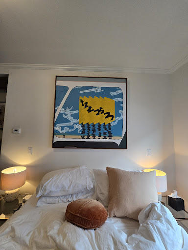 Walking up the stairs, the hotel’s interior was a whole vibe. I’m talking beautiful decor, but what really hit were the pop art paintings that were everywhere. That bed? Super comfortable. The pillows? Like laying on clouds. Plus, they hand you a free vinyl record and two free drink tokens for the bar downstairs. And you know we used them!