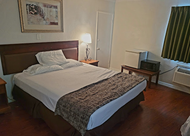 WowâŚwhere do I begin. I mean I know this is a relatively inexpensive place to stay but, I was blown away but how awful it was. Really. I was not expecting it to be that horrifically shocking. Iâll start from the beginning. We pull up, the security lady tells us that the receptionist is out to lunch so we need to wait for 30 min. We wait about 45 for him to return. As we are opening the gate to drive in to the main area we see a drunk driver struggling to enter. We head to the room and boy did it just absolutely reek. Weâre talking nasal assault here. Cleaning products. Cigarettes. Marijuana. Mold maybe? We enter the room and well, I must be honest and say that it called to mind my stay in Tijuana, Mexico years ago. Moving on. There was graffiti all over the walls, on the bed frame, on the dressers, in the bathroom. Donât get me wrong, I love a solid graffiti art piece. This was just not the time and place, ok? Dirty dirty dirty. Broken. Broken. Broken. Rip. Tear there. Tear there. EW hair there YUCK. Donât use the towels guys. The soap crumbled in my hands :( The AC unit was broken, I was cold despite bringing sweaters and a blanket from home. The fridge? Also broken. Well there goes my drink. The TV was broken. I donât need another screen but coming from someone who didnât grow up with cable TV, I see it as something to look forward to when staying at a hotel motel what have you. There were stickers on the dresser, I suppose they were left from a child. No offense kid but I couldâve done without seeing that my whole life. Lastly, there were the sound of footstepsâŚall.night.long. I slept about 4 hours total. Lesson? Just stay at a regular consumer friendly place for comfort sakes! All that being said - I obviously had a very, memorable night lol. Oh yeah. And the power outlets...