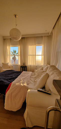 Read more5 stars because Oscar (front desk) was 10/10. Queen suite #7- Room size and beach proximity for the price really make this place a good choice. Feels like an apartment. Request the top floor ocean view. No elevator, must climb stairs but it is worth not to have upstairs tenant footsteps wake you as they are a little loud due to having hardwood floors. We stayed on the 2nd floor and had pretty quiet neighbors but top floor would have been nice. Bed 6/10 - not very comfy but ok does the job. very clean sheets and super fluffy warm down comforter. Cleaning staff do not clean your room daily but you can request a turn over or new towels. The couch had a hide-a-bed which was perfect since we had two dogs 🐕 we could watch the sunset out the window or TV as a family on the hide-a-bed in the living room. The two main windows face the beach and oceanfront walk. Beautiful views! The windows don't open. Small dining table with 2 chairs plus 2 sitting chairs in the living area. Full kitchen with everything: plates, utensils, pots/pans, can opener, 4 each of wine glasses, coffee mugs and juice cups. Dish washer, microwave, stove top, coffee maker and toaster. The bathtub was deep and amazing! Parking lot is a block away to the south and cost $30 Sat/Sun overnight and $20 weekdays. Very walkable location with bike and scooter rentals every where. The Fig tree downstairs has great lattes and good service. I would stay again. The downside is the entire boardwalk is filled with tents/homeless camps. Not sure if this is normal or due to COVID. They are loud some evenings and we saw few fights with loud yelling and arguing....