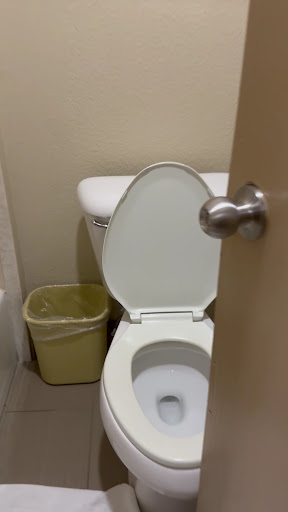 Also, the bathroom door doesn't fully open all the way, so you have to close the door and turn on a noisy light fan to use it. You have to sit on the toilet sideways if you don't want to turn on a light with a noisy fan.