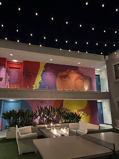 Highlights: clean rooms with personality (the style is not bland, overly outdated, or depressing), very friendly staff, a mini-pool and jacuzzi. Your immediate neighborhood (within a block) is a mixed bag, but the hotel is in close proximity to Venice Beach and a number of solid food and drink options within a 5-10 minute walk up or down Washington. It's also just a 15 minute walk or 5 minute bike ride to Abbott Kinney. There's also some small outdoor fake-grassy areas with hammocks or lawn chairs that are nice for outdoor lounging/working.