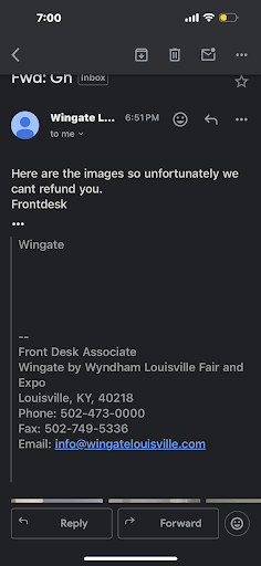 first response was of the manager stating he couldn't see the hotel address in the screenshot. He got a call from his employee stating he saw the app and the listing, and then asked us to send the photo, and then you're going to try and sipute it because the photo did list the address? why not ask that originally.