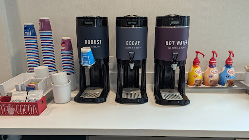 The hotel was aesthetically appealing, updated, clean, and a decent place to stay. The reception area had a bunch of snacks, bottles of wine, a beer cooler, & 2 options of fresh fruit available for purchase. There was a nice amount of places to sit, a pool table, & even some cool privacy work cubes, & hanging nest swing chairs. This was a weekday stay for us. Our room had 2 queen beds, but was a relatively small/semi-cramped room for two Queen beds. The one bed was close enough to the air conditioner that I hit my leg on the corner of the bed frame & then the corner of the air conditioner when getting up to use the bathroom in the middle of the night. The beds were decently comfortable. There was no closet or dresser in the room and not enough places to hang things in general, especially if you have more than 2 people & you use the pool. I didnāt like how the a/c would turn off & on on itās own, as it would wake me up sometimes. The fire sprinklers in the room had an intermittent flashing light, which may bother some when sleeping. It was thankfully overall quiet there. No in room coffee maker, but there was a mini fridge & microwave. Thereās a saltwater pool which was a decent size. It was slightly chilly, but nice to be able to swim. They also had a nice looking fitness room, which I didnāt end up having time to use. The free breakfast was ok, the eggs were a tad too salty for me & my fiancĆ© said they were way too salty, and for me it lacked a large enough variety of fresh fruit, there were 2 fresh fruit options available, oranges & apples. Sadly, the coffee was the worst Iāve had at a hotel. My experience with coffee at hotels has been that itās typically too dark for my taste, but plenty of creamer & sugar (though I donāt even like to have to use so many calories to be able to just try & enjoy my morning cup of coffee) typically do āfix itā. Even with the extra extra cream & sweetener, it was just ok & left a lot to be desired. This sucked because I was exhausted and really needed it, & wanted to enjoy my morning cup of coffee, which I didnāt even finish. On our 2nd day I asked the very helpful & very pleasant woman who worked in the breakfast area why the coffee seemed like it was hot water with a light coffee flavor, & she said whoever made it must have put the wrong amount of coffee in the maker, & she immediately tried re-making the very watered down coffee that was available (I also overheard other guests asking her for better coffee too) & then when the new coffee was made, it was much too dark/strong, but better than the previous batch, but still the creamer & sweetener didnāt completely work to make it as enjoyable as Iād hoped for. Honestly, it was still highly disappointing for the all important morning cup of coffee. The stars of the breakfast here were the waffles, pancakes, & fresh fruit flavored ice cold water options. The hotel is conveniently situated near a ton of new stores, & a mix of fast food restaurants & chain restaurants too. Thereās a Wegmanās grocery store, Target, Walmart, Chick-Fil-A, a Longhorn steak house, & more, just a short 5...