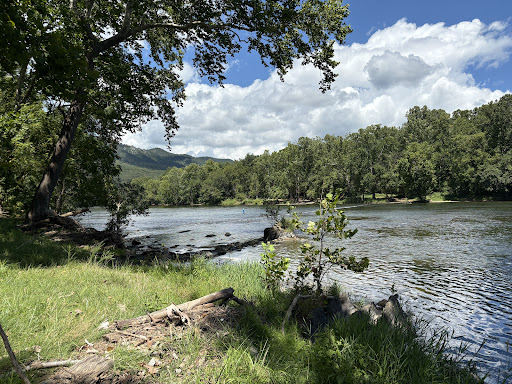 The river spectacular on the property. There is a lovely area to play and hang out by the river. The veiws from the cabin are stunning. The artwork was a point of interest that sparked...