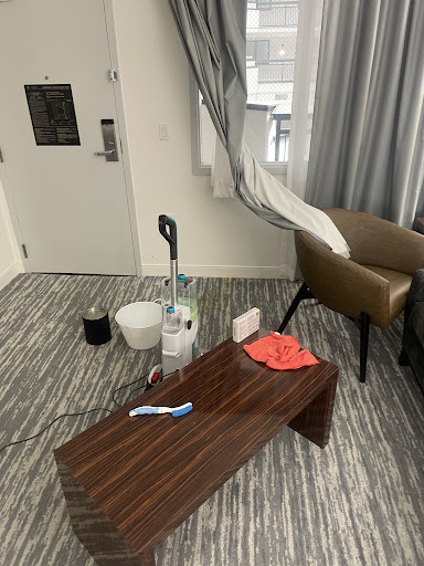 The 2nd hotel room felt very dated and not super clean (despite there being a very aged and warped sticker on the bathroom mirror saying how Hilton takes cleaning seriously, ha). The couch was missing threads and had stains. The arm chair looked like it had seen better days. The carpet seems quite old and appeared to have a large red wine stain on it. The room also smelled faintly of smoke, despite being a non-smoking room. We were exhausted after a long day of travel and activity, so we figured we could deal the the subpar room for 1 night.