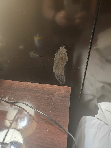 After settling in for the night, we noticed that the room had an odd, damp feel to it. We opened the pull-out couch to find a very uncomfortable pull-out bed with rather sharp metal edges on the joints where the bed folded along the thin mattress. The room had no extra sheets or comforters despite it being a suite, so I went to the front desk to ask for more bedding. I was given 2 very thin blankets (think hospital bed blanket but worse) and 2 sets of sheets. The blankets were not soft, were stained, and had rips in them. The sheets were also stained and looked like someone had not diluted bleach while cleaning them, causing the fabric to have thin, see-through spots. We had to turn up the air conditioning to try and remove the wet feeling that was in the air. While out in the main hotel area where all the floor levels can be seen, I saw at the very top near the ceiling there were 4 large vents that look covered in either black mold, mildew, or dust, so I assume it's no surprise why the air is not good in the rooms.