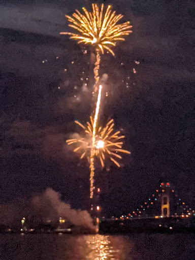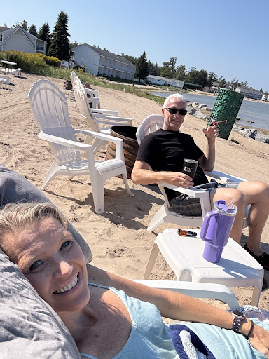 They also have free firewood for the fire pits on the beach (though beware if you go during the Spring when it's been rainy the pile usually has a lot of bugs and it's been outside so starting a fire with it isn't as hopeful as a day later in the summer). While there are hotel rooms that the view is of the parking lot, you also get a view of the beautifully kept lawn, playground and forest beyond the small and well kept lot. The hotels facing the water are amazing. The bridge view is wonderful, especially at sunset and you can even see the various islands, including Mackinac Island. Some of the rooms on the shoreline have balconies that you can simply jump off onto the beach and climb back on and if you want something a little higher there's a second floor.