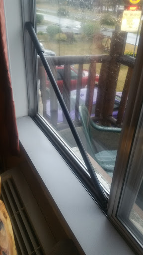 Please note the photo attached to this review. What you are seeing is a broken broom handle that was provided for us to "Lock" our window at 11:00 pm after my wife had discovered that the window was not locked. More on that later.When we first arrived in the hotel lobby the blonde hair clerk was speaking to another couple checking in. We were standing there for quite a bit of time listening to her ramble on and on about all the things to do in the area without even acknowledging us. We could hear someone else behind the desk but no one came out. I had to interrupt her to ask where a restroom was for my wife. After a while later, she finally finished with them and got to us. I was already annoyed and just wanted to check in and was short with her. She gave us room keys that were not activated yet and other brochures of the area and we left. After being out and about for a couple of hours, we had decided not to stay at this facility due to the unprofessional staff and the condition of the facility it self. Just read the other poor reviews on this property and believe them! At this point we went back to the lobby and spoke to the " General Manager" Rick Caldwell, I went in there and asked right away if there was a way to get out of staying here as we had made reservations. He explained to me that due to there cancellation policy that I would be charged for the entire stay! (2 nights) Then he asked why, what was the problem. So I asked him if he really wanted to know. He said yes and I started to explain my self to him and what I had felt up to then. The blonde lady, started pipping in and interrupting me to the point that this turned into an argument in the lobby! I don't care if I was dead wrong! She should of NOT interrupted me and allowed me to finish my views without being rude! At this point, Rick was siding with her and this whole thing was like we were in the "Twilight Zone." We had not even see the room yet!! We left the lobby and retreated to our car for a while to cool down. I had to return to the lobby and get the room keys activated as we didn't get that done in all the commotion. We went to the room and the fun continued. The out side of the facility is gross! We were in room 206, a "Bridge View" room, if there wasn't trees and another building blocking it. The indoor/outdoor carpeting that is around the building is covered with moss and bird feces. There are two chairs on the outside to set on but there is NO way we would. The inside of the room left much to be desired. The carpet in the room was gross as well! In the corner of the room there were spider webs and the ceiling had been leaking at some time with all the water damage! We tried to make the best of it because we were bound to stay there without forfeiting our money. At around 11:00 pm that night, my wife went to check the door and windows in the room. She called on me when she discovered that the front widow to the room was not locked and she couldn't figure out how to lock it. I got up and looked at it and sure enough NO LOCK! I call the front desk and after I finally got someone, they sent maintenance up with a broken broom handle that you see in the picture! I wish I was making this up. By this time I was totally fed up! I had already tried contacting the owners of the facility to see if they would do anything and I was waiting for a reply. The next day we got up and left for the day. Late in the afternoon I was able to contact the owners daughter, as Phil, the owner didn't contact me back, and she said that she would review the tape of our interaction in the lobby. She called me back and allowed us to leave without being charged for the 2nd night, but fully supported her managers and staff! What a joke. I should of known better to reach out to the owners of this dump.Read the poor reviews and believe them. DO NOT stay here! The staff and the facility directly reflect how the owners feel about the people that stay here. This is a slum hotel and should be avoided...