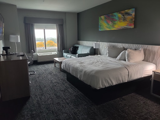 Room was filthy, holes in curtains, no ice bucket, one washcloth, one hand towel, when we asked housekeeping for another SET of towels, we got two more body towels. No bath mat, walls were DISGUSTING with ADULT sized handprints on them at bent over level…yes, come to your own conclusion. Huge clump of female length hair smeared on the inside of the shower wall, shampoo bottle had “BODI WASH” written on it in permanent marker, whole hotel was hot, humid and smelled of urine, someone kept trying to open our door several times in the middle of the night both nights, our bathroom smelled like drugs (not marijuana) the morning of the 28th when we were going to leave, I got so sick from the overwhelming smell. Carpet had not been vacuumed in who knows how long based on the garbage on it and mysterious white stains…ick. Chunks of wall missing in bathroom and again, dirty walls, afraid to touch anything in here. Water in shower was perfect temp turned all the way on. But when I was in for maybe 2 minutes, it would suddenly turn scalding hot as if someone flushed the toilet, then freezing cold, then normal, again. It would do this maybe 6-7 times in a 10 minute shower!!! The room smells like unwashed rear end, it was just an awful stay all around. The last time was a lot better and a lot nicer, aside from not shutting down the pool when someone’s child pooped in it. Unfortunately, many events in town, and this was the only place left with reasonable vacancy. We just figured we would forego the pool/hot tub area this time around. Won’t be making the mistake of staying here ever again, even if it means needing to stay in an entirely different city than the event we are attending. Will definitely be sharing my experience with our followers of The Unladylike...