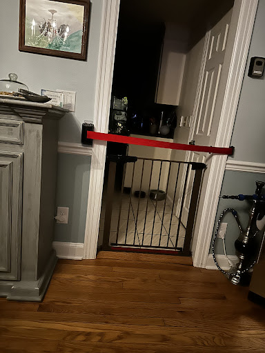 Granted an early check-in time, I was greeted by a statuesque woman called Bri/Bree/Brea who was very welcoming and had such a light touch showing me around. In addition there was also a dog (belonging to the live-in owner) who I liked very much...but it wasn't a shared sentiment. Not the best ambassador for a welcome; he persisted at a low growl as I was shown room-to-room. I wasn't made aware nor was there any signage (that I noticed) regarding the dog. He was taken away at some point and then returned (it's his house!). I love dogs and it's a non issue for me - but easy to see how it could be a problem for someone fearful. Dog gates leading to the office and kitchen from the dining room detracted from the decor a bit. ...as did the red-ribbon entry deterrent (more on that later).