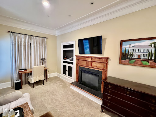 I'm all about deals when it comes to making hotel reservations. So paying double for a room was painful. This was an early Valentines gift for my wife, so frugality went out the window. So what did I get for the price? I got a very clean king room with a gas fireplace. The room was about double the size of a normal motel room. It also had a small outdoor covered patio. The bathroom was basically three rooms. One with the toilet, one area with a large counter space with dual sinks, and one area with a large walk-in shower (it could comfortably hold four people). The room was very clean and had room service daily. We had a small library in the room, bottled water, 4k tv (brilliant picture), and bathrobes in the closet. At check-in, we were greeted by a very nice lady, fresh baked chocolate chip cookies, and a newspaper. The free continental breakfast consisted of bread, various cereals, breakfast bars, fruit cups, yogurt, sausage egg and cheese croissants, and some sort of egg and bacon sandwich on a roll that was very good. The orange juice and apple juice was real and not that orange or brown colored stuff that comes out of a machine. The breakfast room was very unique, and overall I give breakfast 5 stars. But one of the biggest amenities of this motel was location, location, location! I was able to park and not start my truck until we left. Everything is in walking distance! Needless to say, my wife was very happy. This makes me happy, and I can very easily give the James Madison...
