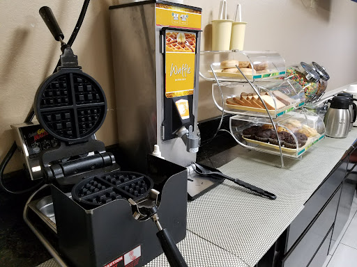 Staff was friendly and hotel is in a good location for our purposes, which was going on motorcycle day rides in the area. The bed and pillows were very comfortable. Air conditioner did not seem to work quite right, failing to cool the room as well as expected. Seemed intentional, meaning the thermostat was likely āgovernedā to keep guests from cranking the air down and using more energy. We asked for and received a box fan, which helped. The bathroom had very little counter space which was annoying for a 5 night stay. The tub seemed cheap and creaked with every little move while showering. Took a while to get past the feeling you would fall through to the next floor! Bathroom door would not lock. Wall outlets seemed worn out, as they were very loose and plugs would easily fall out. Elevator did not work upon arrival, apparently due to an earlier power surge. Would have helped in taking luggage up. However, when it was working again, did not use it as the stairs were much faster. Breakfast was average only. The eggs were what I refer to as fake and would have at least been a little better had salsa been available. The waffles were the best thing on the menu. Two types of sausage that were not bad. Overall, the stay was pleasant enough and the hotel provided what we needed, which was a place to come back to each day for rest. Adequate, but...