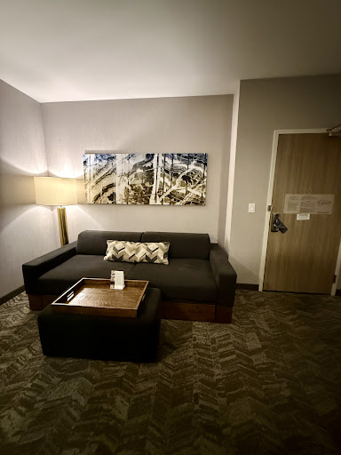 Read moreThis is not the quietest hotel, but it is certainly clean. I called ahead requesting a room further from the elevator and they were able to accommodate. I appreciated this! The noise issues came on all 3 mornings (Tues – Thurs.) Tuesday morning just after 5 am I was awakened by beeping noise and loud banging from the trash dumpster being emptied. This happened again on Thursday morning closer to 6am or just after. I never figured out what caused the other loud bangs between 4-5:30am on Wed and Thursday mornings, but am venturing a guess it may be related to the construction going on next door.|The other noise issues I encountered were “pops” and “creaks” coming from the bathroom. Perhaps this was from the plumbing in the walls making noises when various other rooms were using water? It was a loud enough pop to prevent me from falling asleep most nights without blasting the A/C unit.||The AC works great – cooled the room right down. However, you cannot run the fan constantly and also make use of the true “conditioning” aspect of the heat/air functionality. It’s either all fan only, or AC or heat that will cycle off the fan completely when the temperature is reached.||The rooms are fairly comfortable, if a little dark in areas. Bedside lighting was good. Water pressure at sink was laughable, very similar to Hampton Inn properties that also use the lowest flow faucets available. Thankfully the shower was a bit better, although it too was not the strongest. The soap and amenities were fine. As others have mentioned, the lighting near the sink is not very bright for applying makeup.||One disappointing aspect was missing machine/equipment wipes in the gym. I reported it the first day but the entire 3 night stay they went unfilled. One day later in the week when I checked with the front desk clerk, they still didn’t have any but the clerk was helpful in offering to come with a towel and spray cleaner to wipe things down. I declined as I just lined the entire treadmill area with hand towels.||Breakfast was fine – pretty standard for this range/category of hotel. The oatmeal with 9 topping options was really great. Didn’t try anything else. The coffee wasn’t that great – decaf was not even hot. There were tea options, but no hot chocolate packets.||Overall I’d likely pick this hotel if in the area again because it’s so new and clean. But I might ask for a room that doesn’t have loud popping noises coming from the walls or plumbing and hope they pay better attention to...