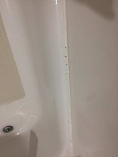 The carpet and tile in the room seemed fairly clean, as well as the sheets. Comfortable bed and the hide a bed wasn't horrible. The water was nice and hot, even if it went everywhere.
