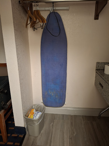 Cleanliness - If you remember the part about no AC being on for a while when we first walked into our room I didn't mention that this was a pet room as well. Fairly strong dog urine smell but after the AC had been running it was not as strong. Really the carpet needs a shampooing or to be replaced; no shoes on it really felt grimey. Peeling paint over sink and really just some low quality repairs when it came to drywall and painting.