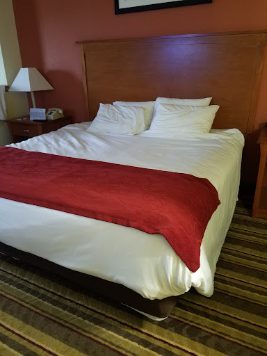 Read moreThe beds were comfortable with clean linens. The rest of the experience was mediocre at best. The handrails on the steps to the second floor were obviously dirty. The only elevator is at the opposite end of the hall from the check-in counter. The floors were visibly dirty. The chairs in our room were well-worn and did not appear clean. The breakfast was beyond disappointing. I have a dairy allergy and expect my breakfast option to be slim. However, the only thing I was able to eat was a plain bagel with waffle syrup and an overripe apple. The only bagel toppings were cream cheese, there was only 2% dairy milk available for the cereal, and the fresh fruit selection was lacking at best. Most of the other options were prepackaged. The orange juice tasted like a freezer smells and the apple juice tasted like a juice cocktail with too much sugar. The first morning the coffee was good but it was awful the second day. The cleaning staff first knocked on our door several hours before checkout and again just over an hour before checkout. I do not find fault with them but expect better communication from their manager so they don’t have to disturb guests unnecessarily. The cooling unit worked well but was loud and distributive to sleep. We did not visit the swimming pool so I can’t speak to that but it appeared clean from the breakfast area, which shares a glass wall with the pool.