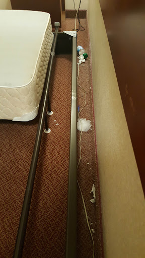 Read moreRoom was overall not clean. Smelled like an old ashtray. Furnishings were very worn. Sheets and pillows appeared clean but comforters were not. There were two queen beds and both comforters were stained and did look or smell clean. Ashtray smell permeates everything that we brought into the room. Air conditioning seemed to function properly but was noisy. Hair dryer in the bathroom was barely secured to the wall and fell off the first time that it was touched. Light assembly between beds was barely hanging on the the wall. The windows in the room had tape around the edges; it appeared to try to keep out drafty air. The overall look and feel was one of long term neglect and lack of maintenance.