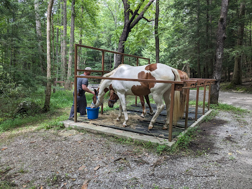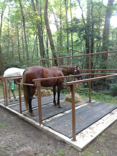 There is a limit of 24 foot trailer, and you'd best be pretty good to get one that big in without bending fenders on big rocks or cars, both of which line the parking and drive going in. Be prepared to back, and push in the horse camping area to turn around. Pretty place, hikers going by several times all day long. Make sure your water tank is full. Newer pit...