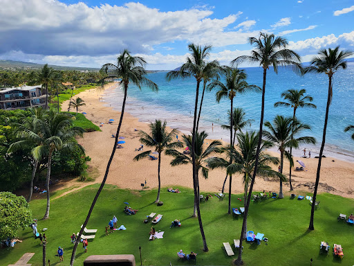 We stayed at Mana Kai during our first visit to Hawai'i. I used my Visa points to book 5 nights at Mana Kai Maui for my honeymoon and this resort was absolutely beautiful. The beach is stunning with a sandy beach and also a grassy lawn to lay out on with palm trees for some shade. It was beautiful and so peaceful and romantic walking the beach for sunrise and snuggling up to watch the sunsets. Our visit was right after the whales had left but we saw some stragglers from the beach some of the nights we were here! The lava rocks at this beach are home to a wonderful little snorkel location! The visibility wasn't amazing the days we were here but the snorkeling right off the beach around the lava rocks was still outstanding! We saw turtles most of the days we were here; one morning we saw 5! We visited several other beaches to snorkel at and the snorkeling off the beach here was my favourite of those we visited. Since this resort is at the outskirts of Kihei it felt very quiet and secluded while still being in walking distance to shops and restaurants. There is a great little path along the coast that connects the resort to a more built up area of Kihei. One afternoon we walked the beach in the other direction to the beach path in Wailea to get a drink at one of the big resorts in Wailea and to visit the shopping center there. Our room was small but contained all of the necessary amenities and since the resort is not in a busy part of town we were able to sleep with the windows open every night and not be disturbed by traffic noise (and I am a very light sleeper). After getting more familiar with Kihei I am so glad I booked this resort as the location truly was so beautiful.