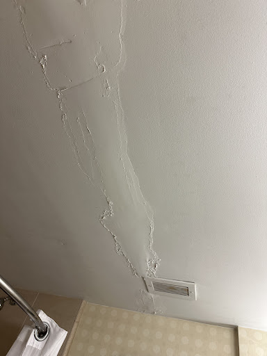 AC didn’t work. It was 75 degrees in the room, the AC was on and trying its best, almost certainly a dirty unit in need of a cleaning. While we’re talking about how hot it was, there was a seam in the bathroom ceiling that looked like it was repaired by a 6th grader with a bucket of silly putty and a can of spray paint. I was pretty sure that with as hot as the room was, satan himself was going to pop through it and claim the room as his domain.