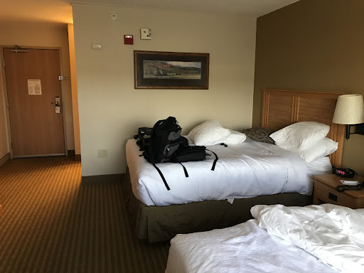 I'd also like to mention that giving us a room with completely wet carpets that smelled like a bottle of perfume had been emptied in the room was not OK. Further, when we called to see if we could switch rooms (we had checked in early after all and knew many people hadn't checked in yet) we were told at first that the hotel was full and there was nothing they could do. Only after insisting did they let us talk to someone else who switched our room for us. I really don't understand why you wouldn't make some changes and save that room with the wet carpets for the last room of the night to be given out. That way you could give it some time to dry and not make other guests change rooms. We'd already unpacked our toiletries and clothing and had to pack it all back up to switch rooms. I also had wet socks which would have been a huge problem if I hadn't brought more than what I needed for the 2 days we were there. All in all I don't think we'd stay in this hotel again since there are several other options in town and I'd like to actually be able to sleep when we...