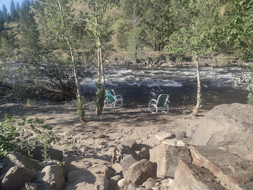 Read moreBlink as you’re navigating the turns on Highway 95 south of Riggins and you’ll miss it- but you’ve gotta stop! You might discount this little place tucked back in the trees, but that would be a mistake- Family owned and operated, you can tell there has been a lot of time and passion poured in to the property. The cabin has enough amenities to get you by without struggle, but it feels rustic enough that you’ll be having folks call you Laura Ingalls Wilder. Am I “off grid”? Close enough. Can I still stream an episode of The Office if I need to? Probably. The white noise generated by the river is immaculate. The grass in the common area is lush and green and perfect for sitting in while you “ground” yourself. The bed and bedding were super comfortable and I slept like a dream (tip: leave the slider open a bit so you can fall asleep to the river sounds!)The old yellow lab who guided me down to the private beach was a sweet potato, and the owner gave me lots of tips on the property and was so welcoming. I can’t believe it took me 24 years to finally stop here- I think cabin #6 might just be my favorite “quick getaway” vacation destination now. 13/10 will be back...