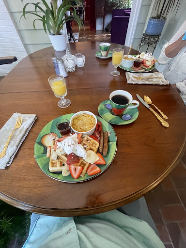 The entire stay was wonderful, and the rooms take you back to a time before everything was so fast-paced, while still providing modern amenities such as a smart TV (already connected to things like Netflix and Hulu), DVDs, and wifi. The decor & design is reminiscent of the late classic Colonial era, and you can feel the history in every piece of furniture and architecture. It has definitely had a modern touch applied, with the saltwater pool, downstairs social room (with mounted flatscreen TV and modern furniture), and wifi/streaming in the rooms. However, it is still very easy to slip away into your own world with the large themed rooms (with fantastic little nuanced touches), wonderfully giant tubs, great cozy beds (which are incidentally really hard to convince yourself to get out of, they're that comfy), and amazing food (which as an add-on, you can have delivered right to your door).
