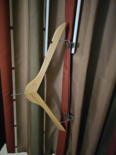 There was no automatic assist or easy way to open the door, meaning if there isn't an attendant or caregiver, the guest is responsible for pushing open the heavy fire door on their own. As I stated, I use crutches and my partner uses a wheelchair, and we were both grateful that I was having a day where I was stable enough to go without my crutches because otherwise we would have struggled to even get into the room. (But at least they have a "lower" peephole! /s) Light switches are at the average height for a non-accessible room, so no points there, and the "touch features on the mirror are useless for folk in wheelchairs due to the sink area being inaccessible to wheelchair users. The room was not carpeted, which was a positive as that is often an issue, but this appears to be just how the rooms are, and not specific to accessible rooms. While accessible features had been added to the shower area it was clear that they’d been done in a way where no consideration for the person needing to use said features was given when setting up the shower. The shower head was detachable, but placed far out of reach, meaning if you're in a wheelchair, you will struggle to reach it. There is a sliding pole to adjust the height next to where it is stored, but again, this is not useful if the person cannot reach it. The "seat" (3 bars) in the shower is way too far away from the shower features to be useful to someone who can't stand, unless someone else is bathing them. Are we expected to sit on the floor to shower? Water got everywhere no matter what we tried, making the floors slick and dangerous (warnings on the wall are nice and all, but aren't helpful when there is zero way to avoid slips and falls due to design). The slip mat was required simply to stand in the shower, as otherwise I slid toward the drain while standing still due to the shape (and absurdity of the incline to the drain) of the shower. My partner struggled to get from his wheelchair to the "shower chair" short of the wheelchair going into the shower, which then created another slip hazard. He could not reach the shower controls from the "chair" nor could he reach the shampoo. The water basically had one temperature: skin melting hot. Unless we had it set to cold (like literally aimed at the blue cold dot), it burned our skin, and when it was on "cold" it was warm-hot. I found myself slipping while helping my partner shower, even though I was outside the shower and standing still (because the way to divide the "shower" from the rest of the bathroom is a weird bump/incline) and required not just the bath mat, but one of the other towels to be able to stand so I could safely help my partner transition himself from the shower and into his wheelchair. Also, there is no drain outside the shower, so all water that gets out just stays there. The sink is NOT wheelchair accessible, unless you have a very short wheelchair or have no arms on your wheelchair. Either way, you still cannot reach the sink handles while sitting in your chair. Please see picture for reference (my partner was lying on the bed at the time, so the wheelchair is empty). The bathroom door opens outwards, which is not the best when dealing with maneuvering in a chair or with mobility issues (best would be a sliding door, but I digress). The toilet was quite high, but at least had railings? The towel rack was "reachable" if stuff was adjusted in places, or if someone is tall in the torso like my partner. The bed is far too high for a safe transfer from a chair without assistance or the use of one's legs. The chairs in the room are all roller chairs, but none have locks that I could find, meaning if you are transferring, you need to shove the chair into a corner (and even then you're still at risk) or deal with a massive fall risk. The placement of said chairs and the table (not on wheels) meant that one couldn't easily access the curtains or the AC unit. The curtain rods are out of reach when in a wheelchair, meaning one has to pull on the curtains directly to close them (if they can even get to them). Sidewalks outside were also less than accessible if you didn't get the handicap spot or wanted to walk in the parking lot. Breakfast was a step above a cold continental breakfast in that they had “scrambled eggs” and “sausage links” (I’m guessing it’s better on weekends?), but the big issue was the fact that the breakfast area was not accessible for a wheelchair user without moving chairs or essentially running an obstacle course. I managed to find a spot for my partner to park his chair in the back after moving a chair out of the way, and then had to go and fetch him breakfast as nothing was in reach for him AT ALL short of maybe some condiments and the plates.