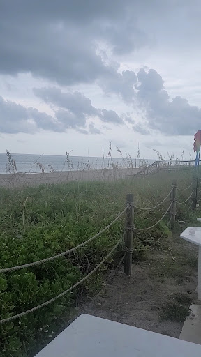 Facing the ocean there's a giant outdoor space with some coverage from the sun and then a bunch of options for seating. There's a boardwalk that's about twenty steps to the beach. There's a guest laundry, towels for the beach and a big hammock.