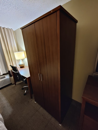 I would have honestly given a 4-5 star review but my experience with the staff was pretty rough. When I got to the hotel the lady who checked me in had her Bluetooth headset on and we kept getting lost in conversation because she was also distracted on the phone with someone else. I made sure to ask to be taken to the airport at 5am and she assured me I was good to go. Even making notes on a log.