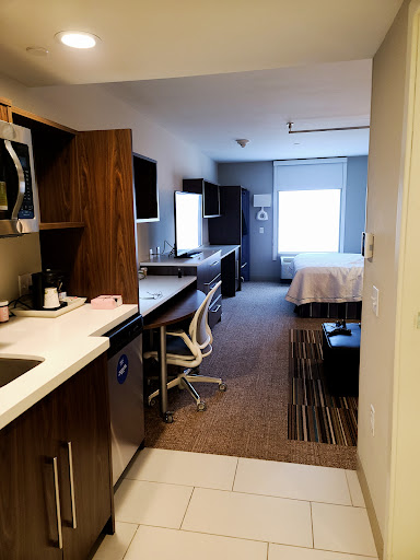 Read moreThis is a nice hotel with clean rooms. The kitchenette included an apartment size fridge, dishwasher, microwave and kitchen sink and was stocked with glasses, bowls, silverware etc. We had a king suite and the bed was very comfortable and had lots of big fluffy pillows. They have blackout shades and an easy to control termpersture system. The room had a table you can roll out to eat at and a desk and ergonomic chair. The tv was about 55 inches and easy to use. The king suite includes a pull out couch that wasn’t squeaky and was surprisingly comfortable. A thick curtain was suspended from the ceiling to pull across creating some privacy between the bed and the pull out couch. You could still view the tv from either side. All furniture is practical and modern. Lots of drawers and shelves to store items as well as a small closet with a curtain to hide items in it. This is a pet friendly hotel. Be aware of that if you have allergies. We like pets but we were not happy that we were all awoken from our sleep with the ferocious barking of 2 very large and loud dogs for about 30 minutes straight at 7:30 in the morning. There should be some sort of rule against that! These dogs were about 8 rooms down from usI I never heard noises from above me so the building seems somewhat soundproof from footsteps except for the DOGS!! The sliding door to the bathroom is so heavy that it gains momentum while closing it and slams into the doorframe. The doors to the rooms were also extremely heavy and when they closed, the entire hotel shook. I was afraid that the king studio suite would be small for my family but it very comfortably fit one adult and 3 children. We could have fit one more person. We were alerted at check in that there was limited housekeeping on the weekend but asked what items I might need (towels). Upon arrival, the front desk clerk asked what brought us to town and we responded with “a funeral” and immediately upon hearing that, a second clerk came over and told us that they would give us a reduced rate which I wasn’t expected but really appreciated. If the dogs would stop barking (they don’t) I would give it 5 stars. I can only imagine how many other families with small children are extremely...