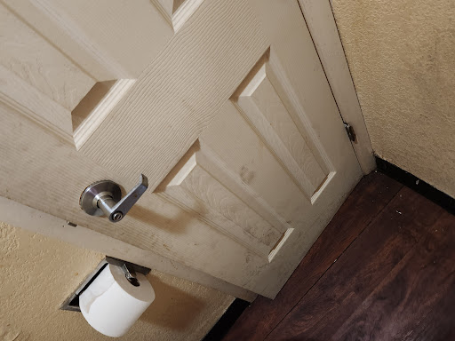 The manual lock on the door is broken.
